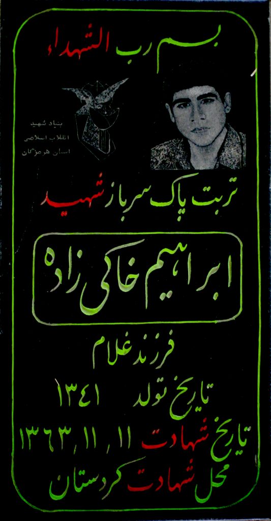 شهیدابراهیم خاکی زاده در یازدهم تیر1341، در روستای لافت از توابع شهرستان قشم به جهان گشود . پدرش غلام ،ماهی فروش بود و مادرش شریفه نام داشت . تا پایان دوره متوسطه در رشته انسانی درس خواند و دیپلم گرفت .به عنوان سرباز ارتش در جبهه حضور یافت . یازدهم بهمن 1363 ، در جاده اشترآباد – کلاه دول کردستان هنگام درگیری با گروه های ضد انقلاب بر اثر اصابت گلوله به پهلو، شهید شد . مدفنش در گلزار شهدای شهرستان بندرعباس واقع است .