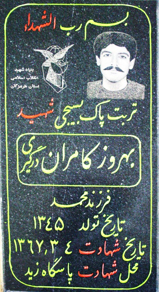 شهید بهروز کامرانی درگیری در یکم شهریور 1345، در روستای درگیر از توابع شهرستان بندرعباس به دنیا آمد . پدرش محمد کشاورز بود و مادرش حلیمه نام داشت تا پایان دوره راهنمایی درس خواند . به عنوان بسیجی در جبهه حضور یافت . چهارم خرداد 1367، در شلمچه به شهادت رسید . پیکرش مدت ها در منطقه باقی ماند و سال 1374، پس از تفحص، در گلزار شهدای شهرستان زادگاهش به خاک سپرده شد.