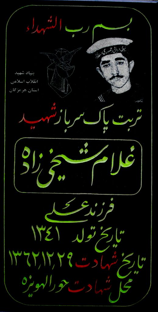 غلام شیخی زاده در یکم آبان 1341،در شهرستان بندرعباس به دنیا آمد. پدرش علی گروهبان دوم شهربانی بود و مادرش سکینه نام داشت . تا پایان دوره ابتدایی درس خواند . به عنوان سرباز ارتش در جبهه حضور یافت . بیست و نهم اسفند 1362، در حورالهویزه بر اثر عوارض ناشی از مصدومیت شیمیایی به شهادت رسید . پیکر او را در گلزار شهدای زادگاهش به خاک سپردند .