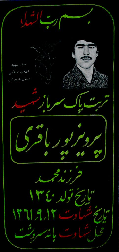 شهید پرویز پور باقری در هفتم بهمن 1340، در شهرستان کرج به دنیا آمد . پدرش محمد ، کارمند نیروی دریایی ارتش بود و مادرش طاهره نام داشت . تا پایان دوره متوسطه در رشته حسابداری درس خواند و دیپلم گرفت . به عنوان سرباز ارتش در جبهه حضور یافت . دوازدهم آذر 1360، در محور بانه – سردشت توسط نیروهای حزب دمکرات اسیر شد و پس از یک سال اسارت در زندان آلواتان به شهادت رسید . پیکرش مدت ها در همان منطقه بر جا ماند و بیست و شش سال بعد، پس از تفحص ، وی را در گلزار شهدای شهرستان نبدرعباش به خاک سپردند .