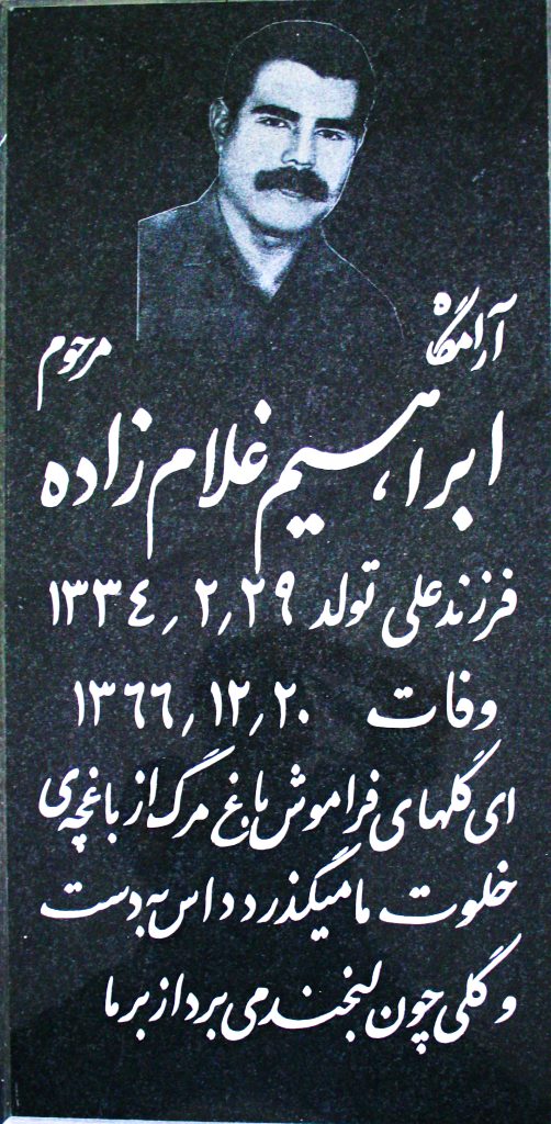 مرحوم ابراهیم غلام زاده  در بیست و نهم اردیبهشت 1334،در جزیره هرمز از توابع شهرستان قشم چشم به جهان گشود . پدرش عباس ،کارگر معدن بود  و مادر بلقیس نام داشت . تا پایان دوره متوسطه در رشته اقتصاد درس خواند و دیپلم گرفت . پاسدار بود . بیست و یکم بهمن 1361،در بندرعباس مورد سوءقصد نیروهای سازمان مجاهدین خلق (منافقین) قرار گرفت و بر اثر اصابت گلوله به کتف، شهید شد . پیکرش را در همان شهرستان به خاک سپردند .